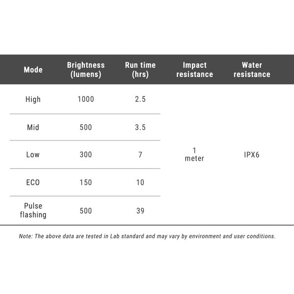 Lámpa és gyorskioldós tartó egyben: Az integrált kialakítás egyesíti a lámpát és a tartót. A gyorskioldó rendszer lehetővé teszi a könnyű eltávolítást a kényelmes töltéshez és tároláshoz.