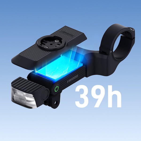 Az FR1000 egy minden-az-egyben megoldás városi és országúti kerékpárosok számára: lámpa és tartó integrált kivitelben. Zökkenőmentesen csatlakozik a vezető kerékpáros komputer márkákhoz, és erőteljes, hosszú üzemidejű fényt kombinál power bank funkcióval egy letisztult, kompakt formában. Az állítható fényszög, a megnövelt oldalsó láthatóság és az időjárásálló kialakítás révén az FR1000 minden kerékpártúrához ideális – a napi ingázástól az egész napos kalandokig.